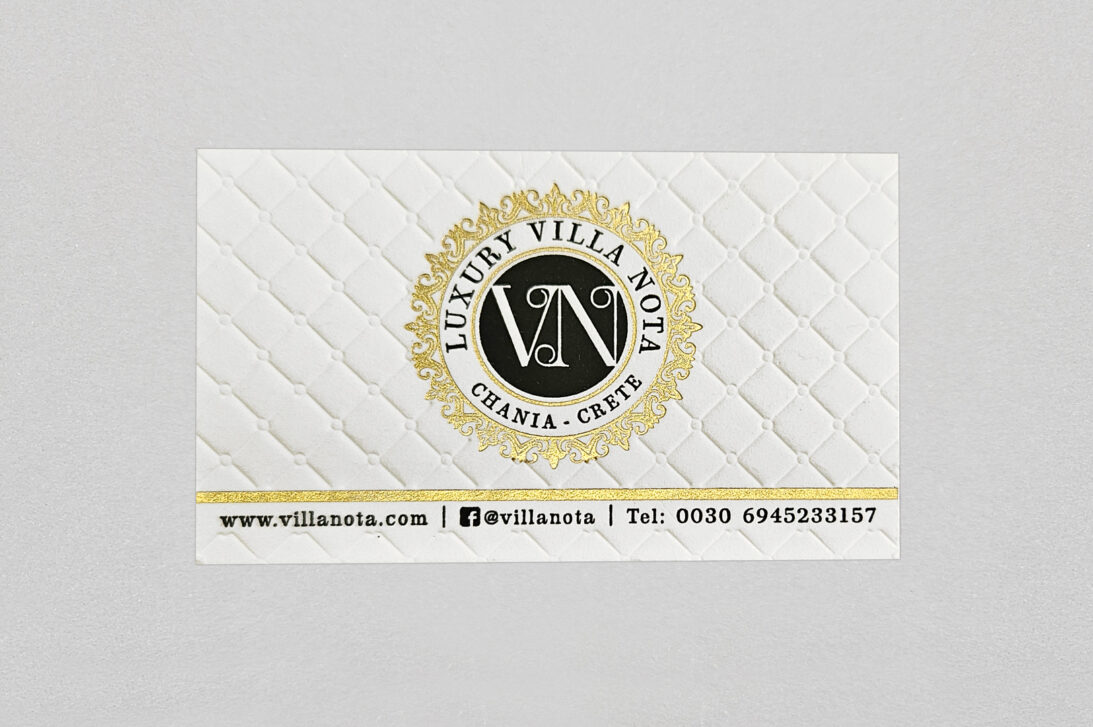 Εκτύπωση: βαθυτυπία & θερμοτυπία χρυσή, μαύρη και τυφλή