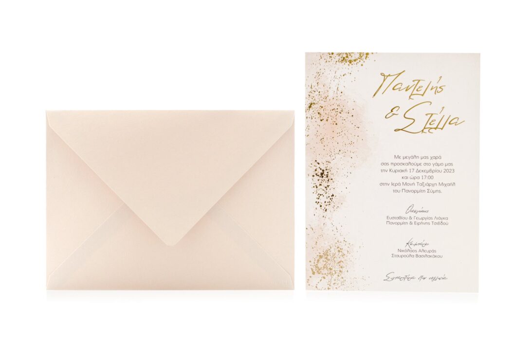 Εκτύπωση: μελάνι (κείμενο) και θερμοτυπία χρυσή (πιτσιλιά)