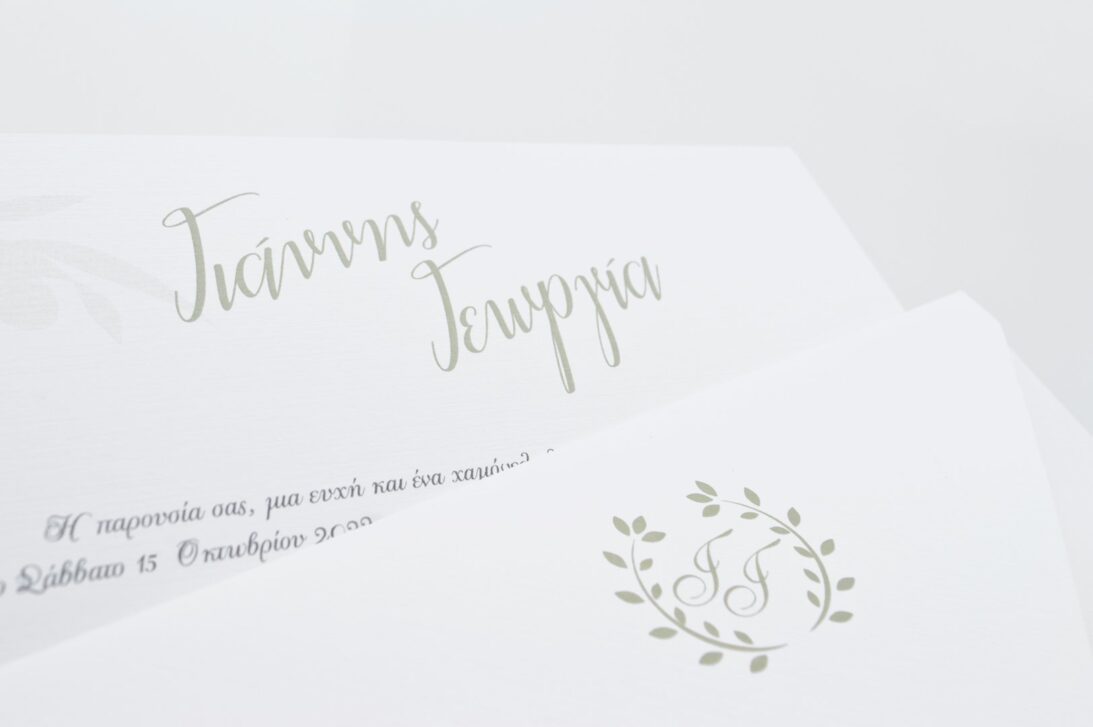 Εκτύπωση: θερμοτυπία χακί με στεφάνι και μονογράμματα