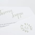Στην τιμή της πρόσκλησης περιλαμβάνονται η εκτύπωση μονογραμμάτων στον φάκελο και η μελάνι στην κάρτα.