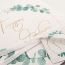 Αξεσουάρ: καρτάκι 5×5 εκατ. με μονογράμματα και στεφανάκι και Κορδέλα γκρο λευκή 0,6 εκατ.
