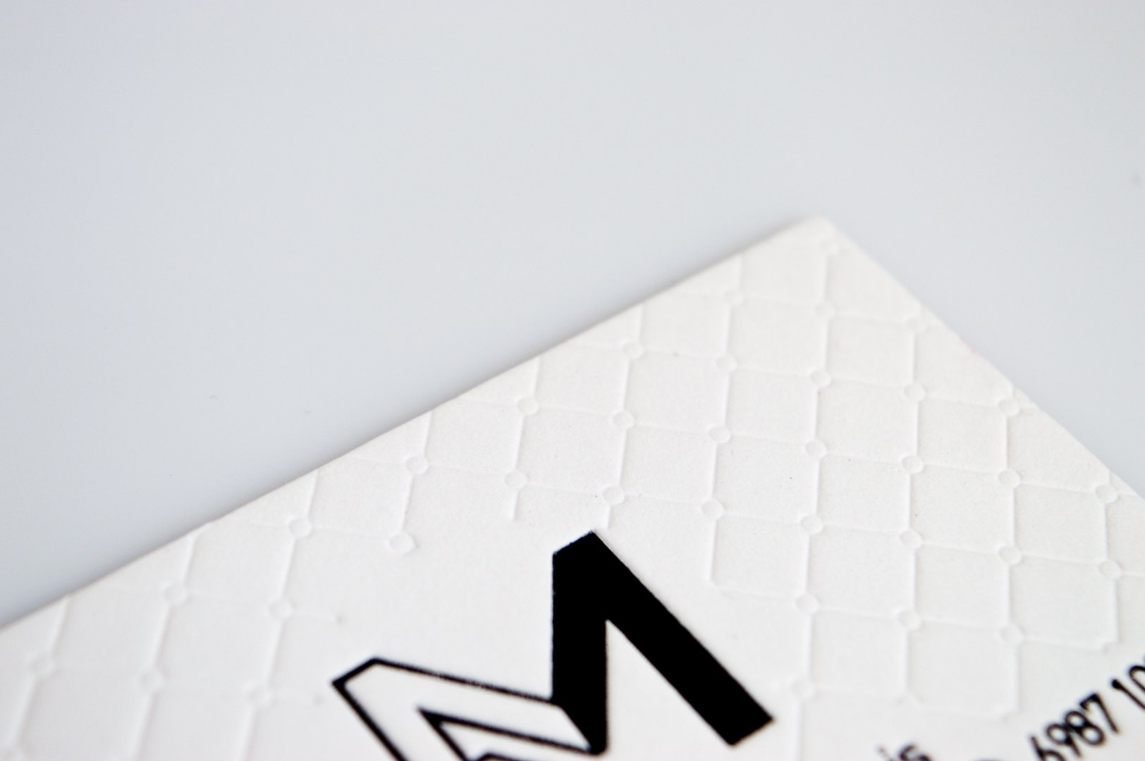 Λεπτομέρεια Επαγγελματικής κάρτας (business card) σε βαμβακόχαρτο 1000γραμ. με βαθυτυπία και χρυσοτυπία