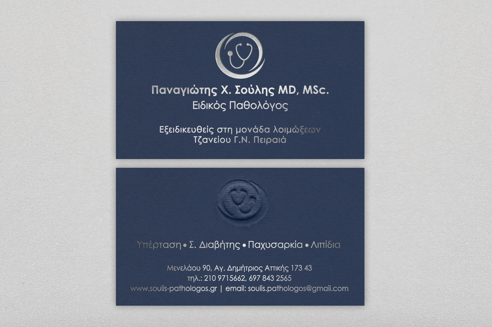 Επαγγελματική κάρτα (business card) 5,5x8,5 εκατ. σε χαρτί βελούδο 280gram και ανάγλυφη εκτύπωση χακί
