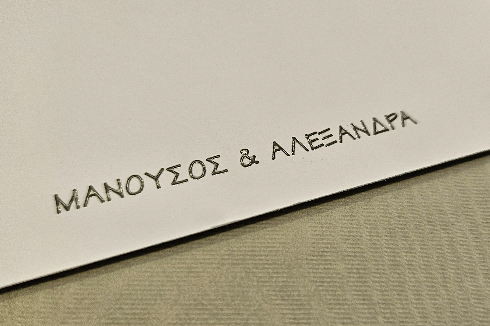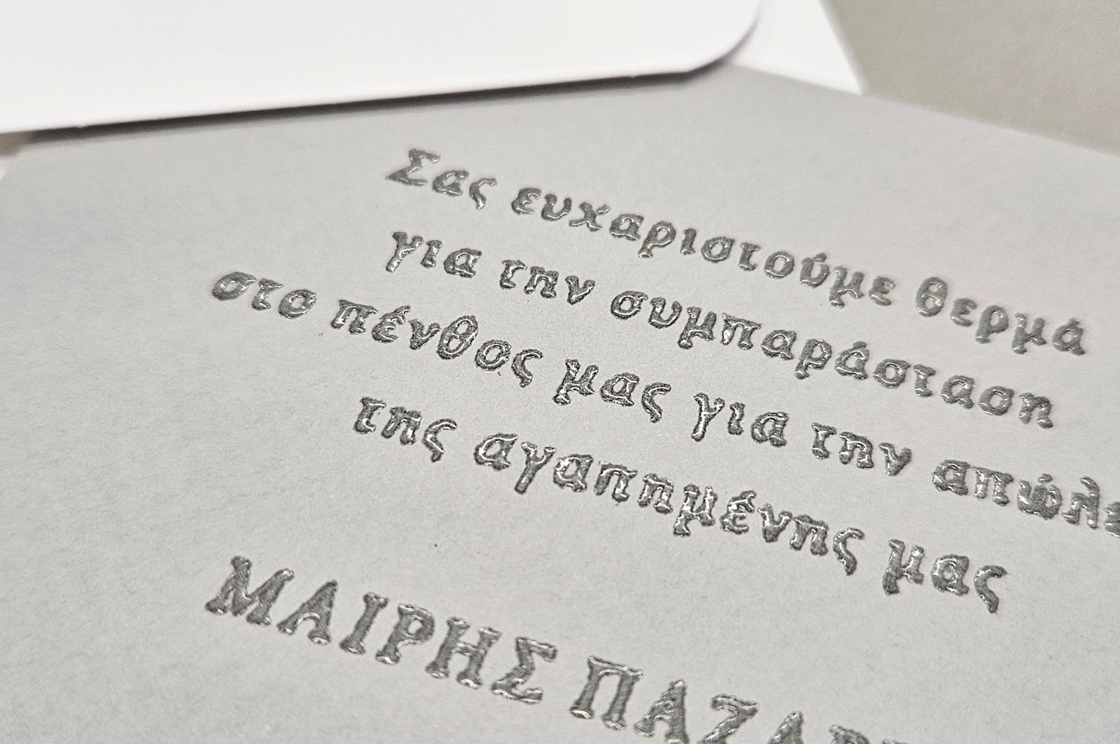 Λεπτομέρεια Ονομάτων στην Κάρτα με ανάγλυφη εκτύπωση σε γκρι χρώμα_Κωδικός 5965